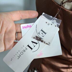 Prom Dress Maxi Gown 10 Brown Mermaid Satin Beaded Asymmetric Shoulder Glam