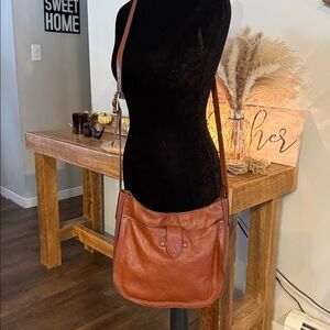 EUC Frye Olivia Large Leather Crossbody in Cognac Brown