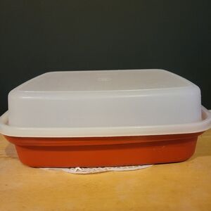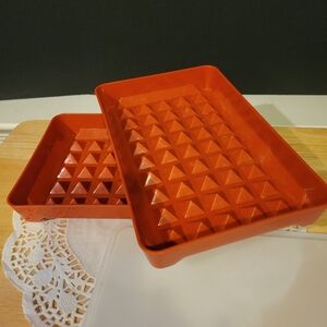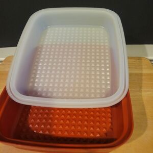 Set of 2 Vintage Tupperware Marinade/Storage Trays Paprika Red w/ Lids