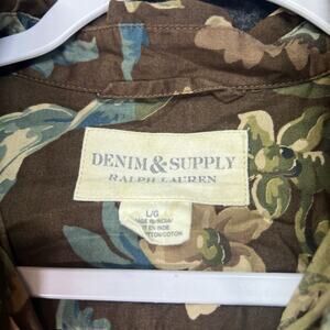 Ralph Lauren Shirt Mens Large Brown Floral Print Denim & Supply Casual Button Up