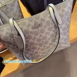 NWT COACH Fiona Zip Tote Bag In Signature Canvas CW396, Gray/Silver