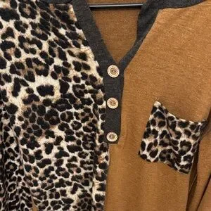 Chic BiBi sweatshirt with leopard accents. Features button-up front and cozy hood. Ideal for casual outings.