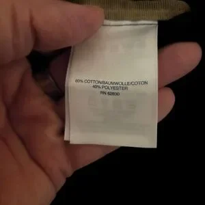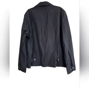 Like new ! front pockets and snaps in the back bottom for size adjustment. Zipper front . Cotton poly. Smoke and pet free.