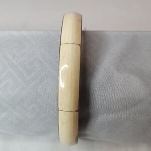 Vintage Wood / Horn Inlay Cream Brass Bangle 80s
