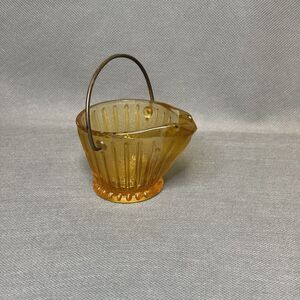Vntg Amber Coal bucket Toothpick Holder Hazel Atlas Depression Glass Amber Glass