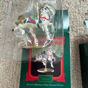Vintage Full Set Hallmark Carousel Horses 91-94 Snow Holly Star Ginger + Boxes