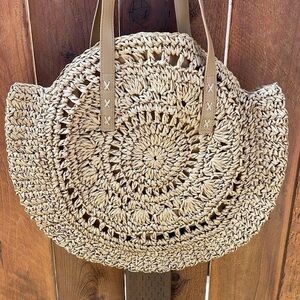 Raffia Bag Tote, Round Bag, Straw Handbag Used