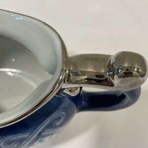 * Porcelain/ceramic cream pitcher in royal/white & silver