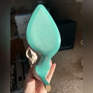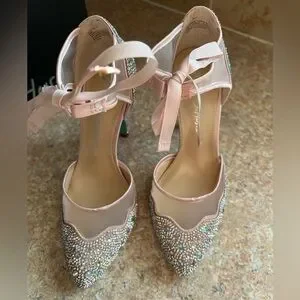 Elegant Betsey Johnson heels with sparkling iridescent rhinestones.