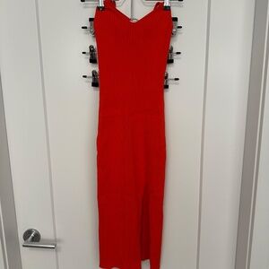 Salanida Knitwear ribbed midi dress. Stretchy material, fits xs/m. Straps need to be re-stitched (I was going to have it altered but decided against it). Beautiful dress, just didn’t suit my short torso. Has never been worn. - Reasonable offers considered. Bigger discounts if bundling! - All worn items in my closet are properly cared for and have never been put in the dryer - Smoke free, non shedding pet home - Feel free to ask any questions