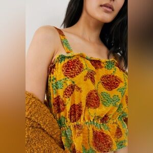 Brighten up your winter wardrobe with the sunny hue of this cropped top. Suspended from a set of slender straps, this tactile velvet tank can be layered over long-sleeved tees when the weather's at its chilliest, and worn alone of denim shorts when the temperatures start to rise.