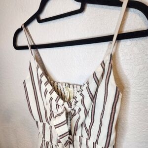 Japna S Cream W/Red Striped Cutout & Tie Front Maxi Dress Summer Dress