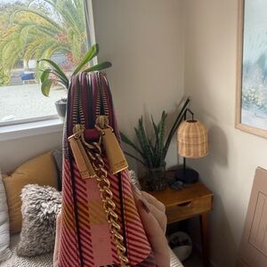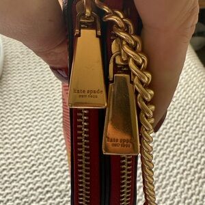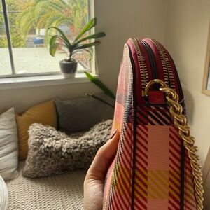 Elegant Kate Spade Morgan crossbody bag in red and pink plaid. Features a stylish gold chain strap perfect for the holidays. A bit of wear on the bottom corners (pictured). Please comment with any questions and feel free to hit the offer button 🖤