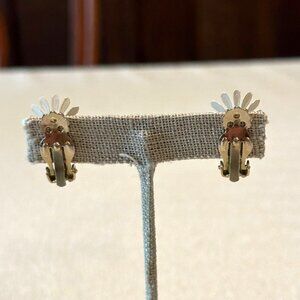 Vintage Daisy Clip-On Earrings Retro Floral Design Yellow & White Enamel Metal