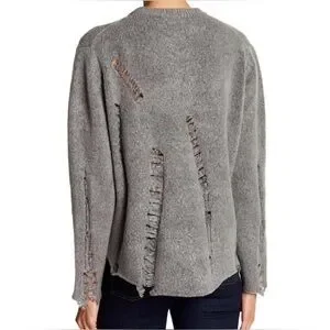 RD Style Destroyed Soft Charcoal Gray Crewneck Pullover Sweater