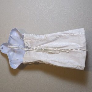 Parthea white floral jacquard lace up back sleeveless split hem mini dress