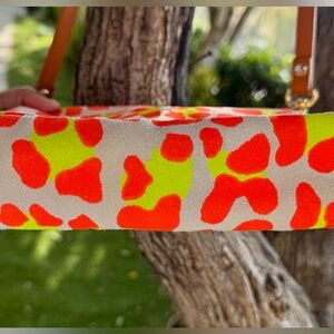 Add a pop of color to your outfit with this stylish crossbody bag. Featuring a vibrant orange and green pattern, it's perfect for any occasion. Add the neon shorty strap, sold separately in my closet. Create a bundle and make an offer. Bag is in excellent condition.