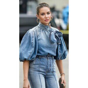 MATCH: This puff sleeve tops for women is perfect for all body types, and will make you look charming, perfect with shorts, jeans, tights or skirts, you will be stylish with this denim tops in weekends, friends gatherings, shopping, and so on.
