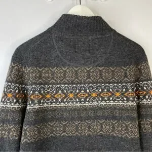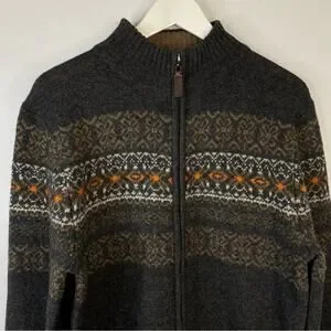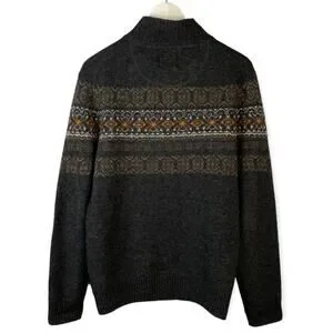 Telluride Clothing Fair-Isle Full Zip Cardigan Wool Blend Charcoal Gray Medium