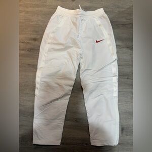 Sleek white pants featuring a bold red Nike swoosh. Perfect for everyday wear. These were apart of the summer Olympics athletic gear and podium pants. Only wore once.
