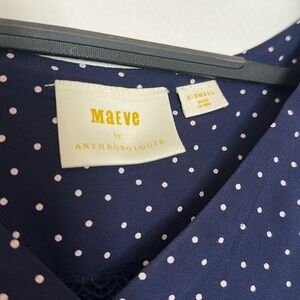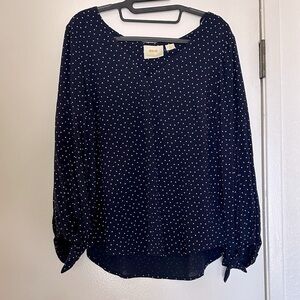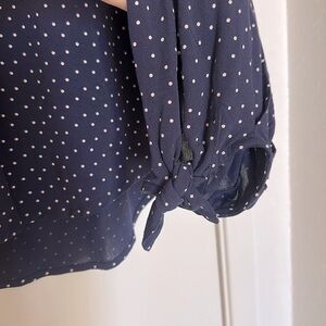 Anthropologie Maeve Pernille Tie-Sleeve Blouse in Navy Blue XS
