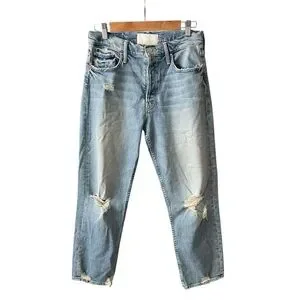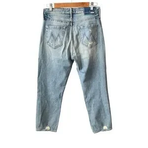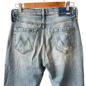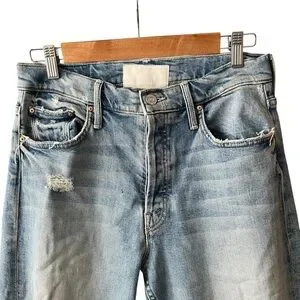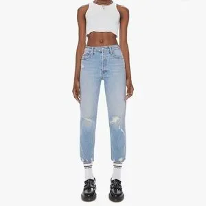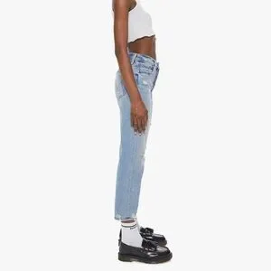 Our most loved MOTHER superior style! The MOTHER Superior capsule launched in 2017 using men’s jeans, patterns and fabrics for a "borrowed from the boys" look. High rise, button fly jean in a relaxed fit, vintage-inspired wash and distressing. Holier Than Thou patch included.