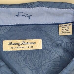 Tommy Bahama Mens 2XLT Blue Leaf Print Hawaiian Shirt The Coconut Point Tall
