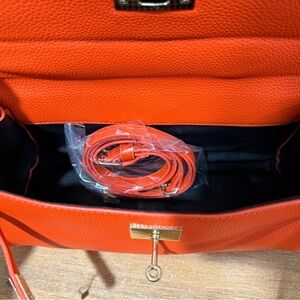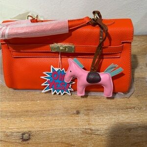 Elegant Orange Crossbody Bag with Pink Blue Horse Charm Accent