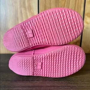 Stylish pink rain boots for kids. Durable and waterproof. Easy to clean.