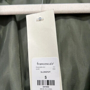NWT Miami by Francesca’s Olive Puffer Quilted Jacket Hooded Vest size Small with detachable Faux Fur hood