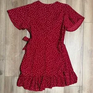 Red and White Polka Dot Wrap Dress Medium