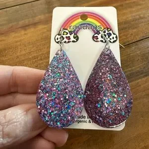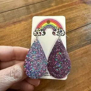 Sparkling teardrop earrings with multicolor glitter. Perfect for adding a pop of color. Lightweight, measure approximately 3in long.