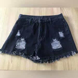 NWOT … SHEIN “Size: M” Distressed Black Denim Shorts
