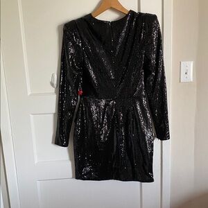 NWT Ieena for Mac Duggal Sequined Structured Faux Blazer Mini Dress in Black