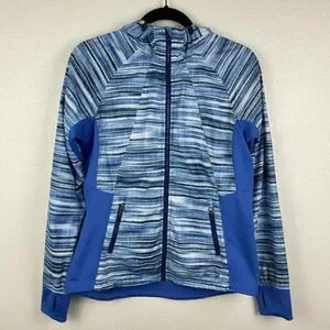 Marmot Jacket Women's Sz M Muse Track Hooded Full Zip Athletic Striped Blue