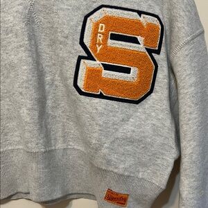 Super dry Gray Cropped Sweatshirt with Orange Patch. Brand new. No tag