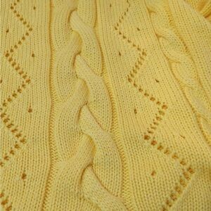 Vibrant yellow sweater with intricate cable knit design. Perfect for cozy layering. New, Tag removed but never worn or washed Original Price 109.00. Size M