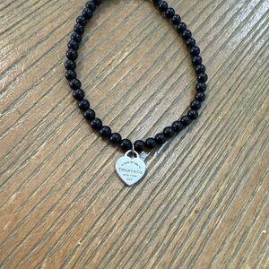 Tiffany & Co. 925 silver mini RTT heart pendant black onyx bracelet.
