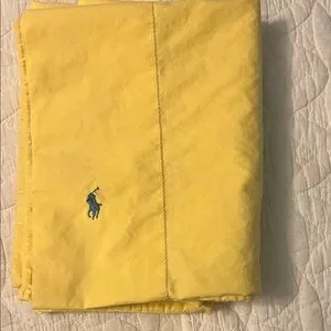 Vibrant yellow pillowcase featuring the classic blue Ralph Lauren logo. Elegant and comfortable. Two king pillowcases by Ralph Lauren.