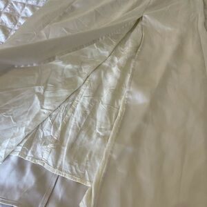 Chic midi dress with puff sleeves. Whisper white beige color. Elegant side slit design.