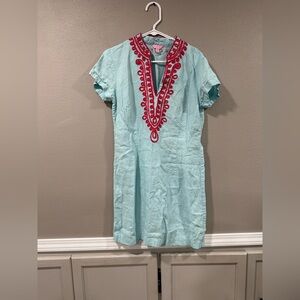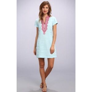 Lilly Pulitzer Boca Garden Linen Tunic Dress Aqua Embroidered