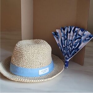 Chic straw hat for kids with a light blue band. Ideal for sunny adventures.