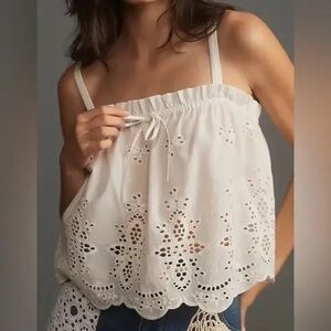 NWT Anthropologie Maeve Eyelet Babydoll Tank Ivory XL