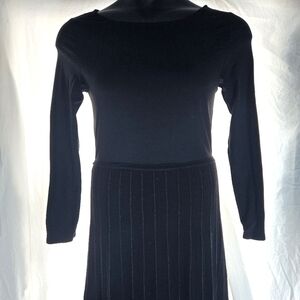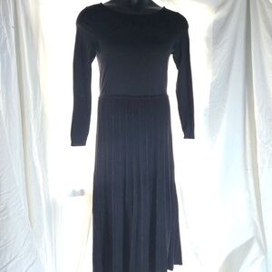 Beautiful black Soft Surroundings dress with long sleeves and sparkling knitted pleated sweater skirt. Elegant modern and comfortable. Perfect for winter activities that require elegance. Order it today ❤️ 🤗