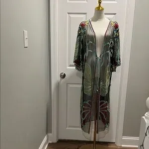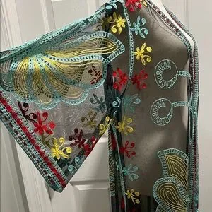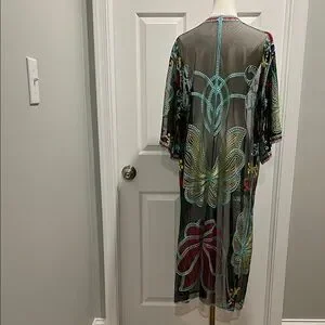 Elegant sheer robe with colorful embroidery, perfect for adding a touch of luxury to your loungewear collection.