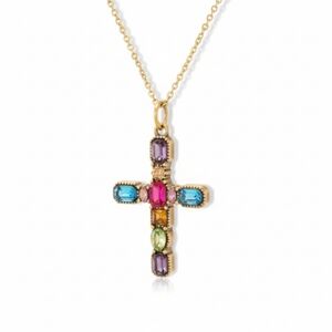 Multicolor Gemstone Cross Pendant Necklace