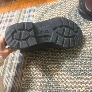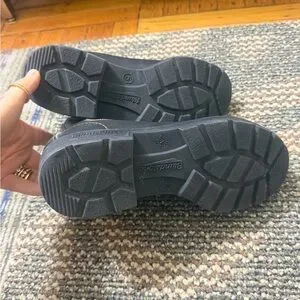 Like new. Worn twice indoors and just didn’t work for me and my super high arches. Sad as I wanted a pair forever. My loss is your gain.