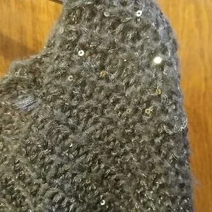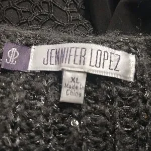holiday ready from JENNIFER LOPEZ. dark grey long sleeve round neck sweater with silver sequins. beautiful for holidays or new years!