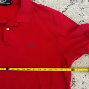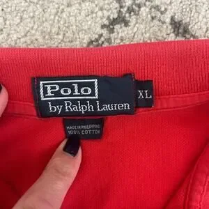 This is a pre-owned Polo Ralph Lauren red polo shirt with a retro, classic style. The shirt has a stylish color fade, giving it a unique vintage look. Perfect for achieving a preppy Y2K aesthetic. In a Men's size XL you can go for the perfect fit or oversized baggy vibes!