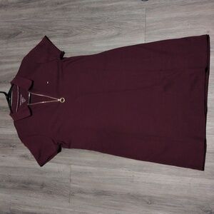 NEW with tags. Tommy Hilfiger Zip Front Pique Polo Dress In Burgundy Sz L.